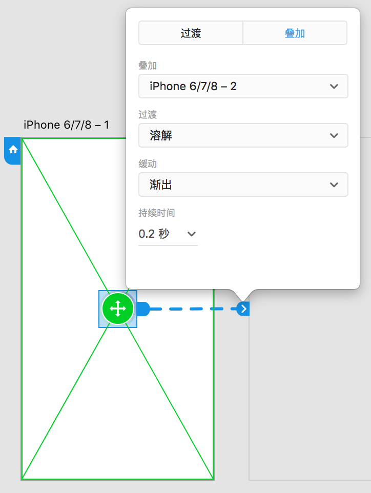 叠加是用来制作在页面中的交互,它的使用方法是在连接到目标物体之后,选择“叠加”,之后会出现一个绿色的框在原页面上,被连接的页面底色会变成透明,然后选择动态效果即可完成页面内的交互。