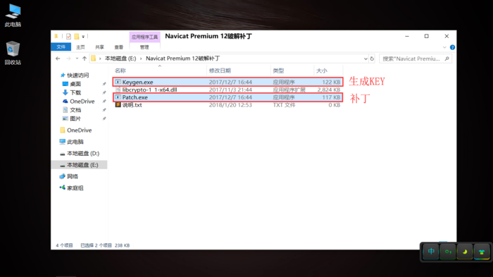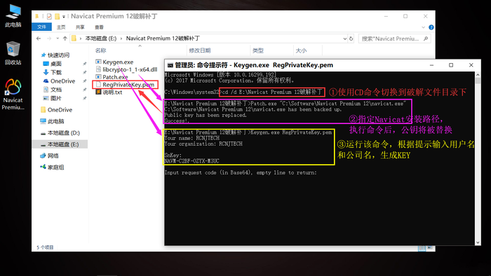 首先使用cd命令切换到当前Navicat Premium 12破解补丁文件夹位置,如cd /d E:\Navicat Premium 12破解补丁;