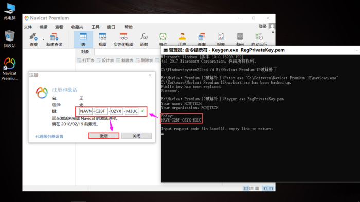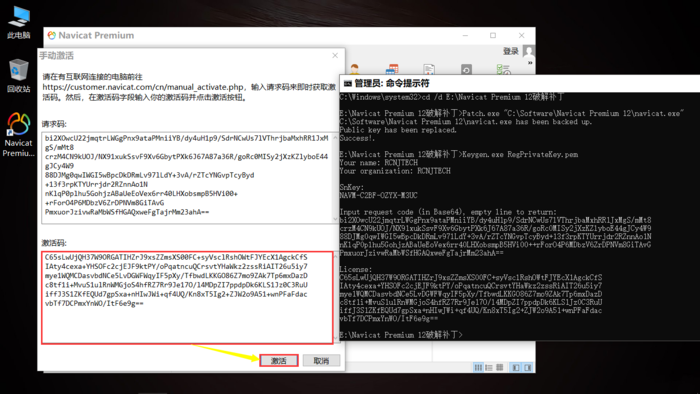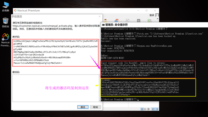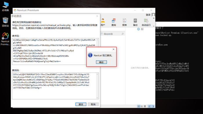 将生成的激活码复制到 Navicat激活码输入框中,点击激活:
