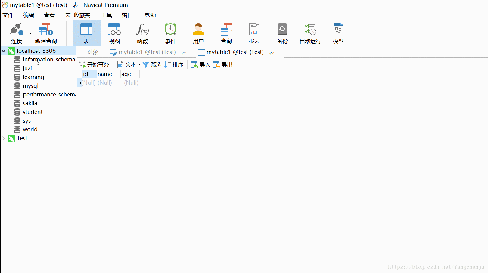 如果我们想看表的数据信息,可以双击表名信息,也可以选择右键,打开表。如下图所示。