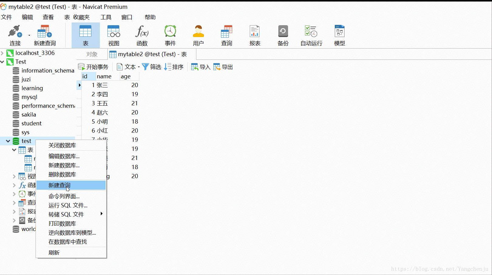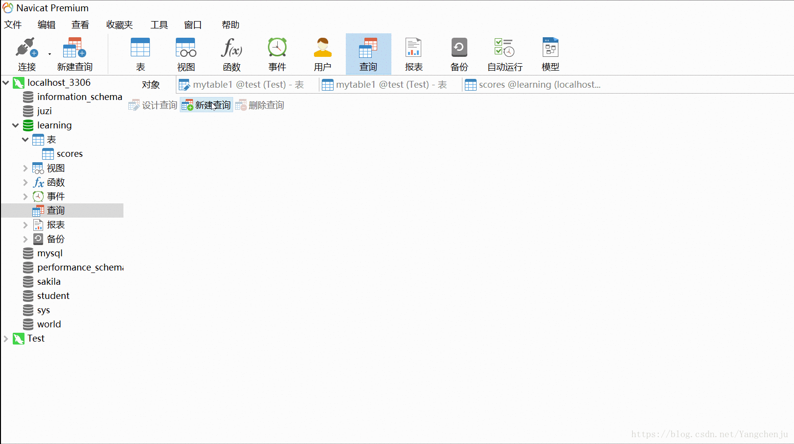 点击查询图标 >点击新建,然后输入SQL语句,例如: