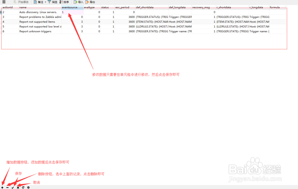 当打开表的数据信息,可以增加数据、修改数据、修改数据,如果想修改数据直接修改后点击保存即可。