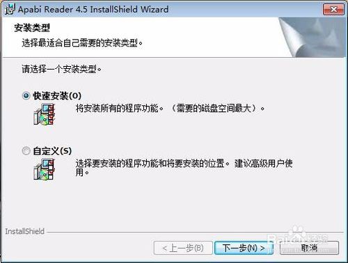 在起点软件园下载Apabi Reader软件打开安装程序,选择快速安装