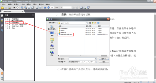 Apabi Reader还针对鼠标操作设计了一个窗口导航的功能,即在一键阅读模式下,单击鼠标左键,弹出一个导航窗口,