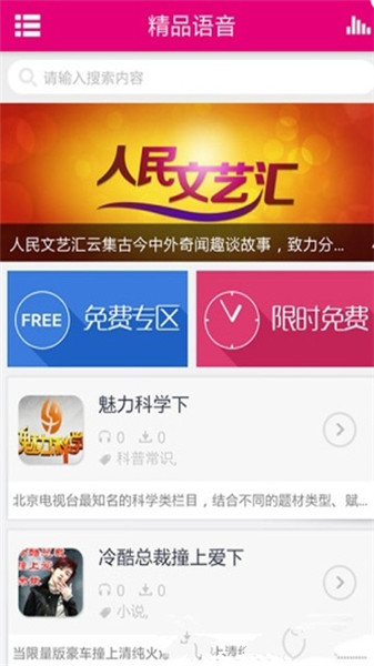 人民文艺汇安卓版是一款小说阅读类软件,用户可以在人民文艺汇中看到很多国内外知名的小说故事,让用户可以通过这些来掌握很多自己不知道的事情。同时用户还可以在平台上聆听这些小说,这样就可以让用户用耳朵来来将整个小说给看完。