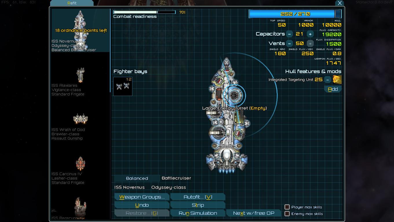 当你在市场购买或者打捞到一艘新船后,第一件事就是到最近的市场进行维修和改装。在合适的槽位安装合适的武器:护盾压制、装甲破坏、展开防空火力。此外,不同的舰船有不同的幅能容量与耗散,这样使得”小船扛大炮“成为了一种非常激进的方案,因为谁都不想每开一炮都要拼命散热后才能继续运转。同时由于维持护盾和护盾阻挡伤害也需要大量的幅能来维持,所以不断产生幅能的武器要和护盾在装配上合理搭配,才能在战场上发挥最大性能。