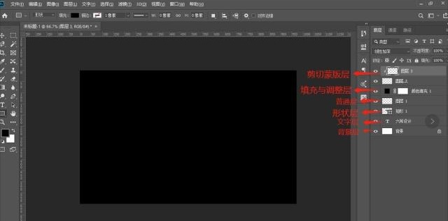 图层类型:背景层,文字层,形状层,普通层,填充与调整图层,剪切蒙版图层,智能对象图层等