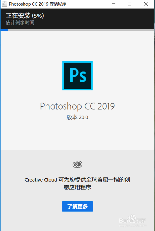 开始试用之后,就可以显示我们PS-CC2019最新版本的使用界面了,这个时候我们的PS就算彻底安装好了,只不过是试用期7天的。