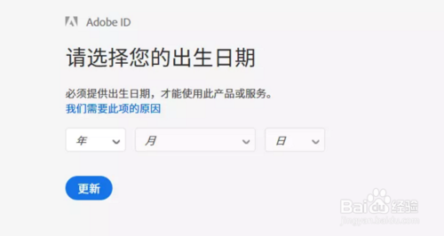 第一次使用会弹出选择出生日期的框,这个随便填写就可以了,然后更新一下。可能是新版本使用,Adobe公司在做一个用户年龄调查,这是无关紧要的。