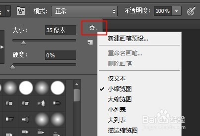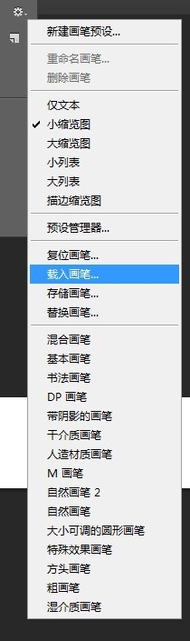 在打开画笔工具之后,最上方画笔工具的后面有一个下拉箭头