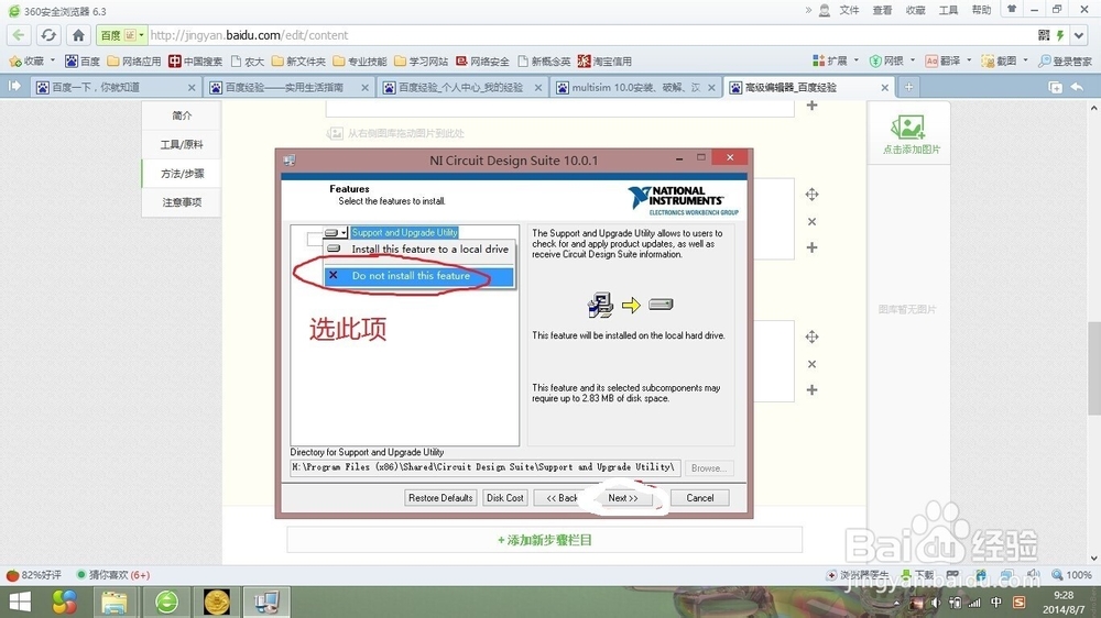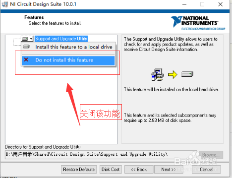 在弹出的下拉菜单中选择“Do not install this feature”