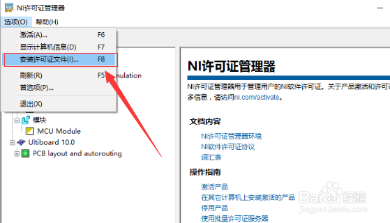 按如下步骤操作:开始菜单-->所有程序-->National Instruments-->NI License Manager(这是NI许可证管理器)-->选项-->安装许可证文件-->选择第8步生成的许可证-->关闭窗口。恭喜!安装完成。