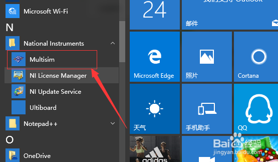 开始菜单-->所有程序-->National Instruments-->Circuit Design Suite 10.0-->Multisim