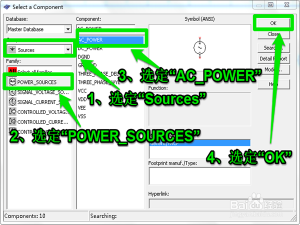 依然在同样的界面依次选定"Resources">>"POWER_RESOURCES">>"AC_POWER">>"OK"选定交流电源。