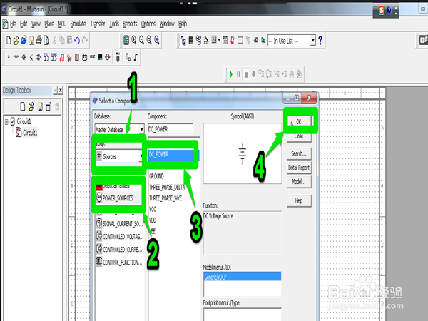 依然在同样的界面依次选定"Resources">>"POWER_RESOURCES">>"DC_POWER">>"OK"选定直流电源。
