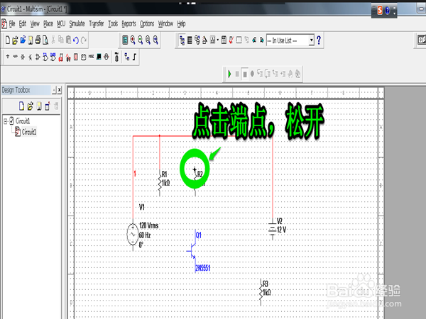 单击元件一端,松手,这时出现连线,在想要与之连接的连接点再次点击,则表示连好了。