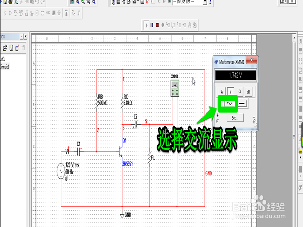 在万用表界面选择交流电显示并记录数值。