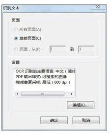 4、点击“在本文件中”,弹出识别文本的窗口,为了方便,我选择了当前页面,设置中内容一般不用设置,如有需要可以点击编辑,更改设置项目,如下图所示: