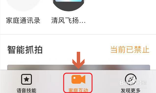 点击主界面下方的“家庭互动”,然后会在对应页面的最上面看到一项“视频通话”,我们只需将开关滑动到这一侧,家中的音箱就会自动开启,下图就是视频实时监控画面,我们还可以录制或者截屏呢;