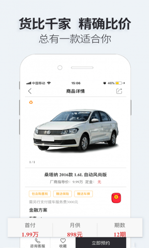 3、独创购车方案筛选器,快速为您推荐适合的购车方案,省心省时省力;
