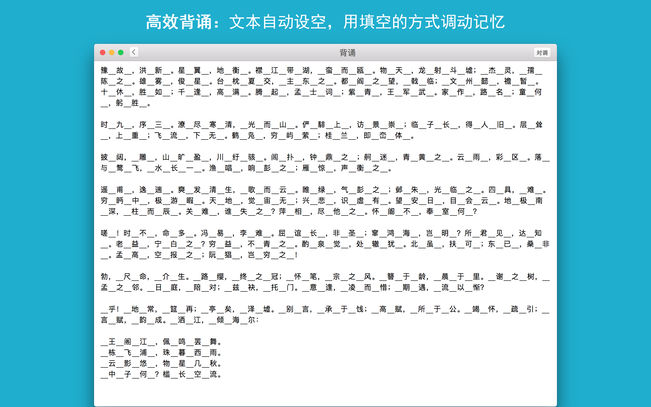 高效背诵:文本自动设空,用填空的方式调动记忆。