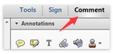 1、先来打开我们已经安装好的adobe reader(PDF阅读器),然后点击左侧菜单栏中的comment【注释】选项卡。