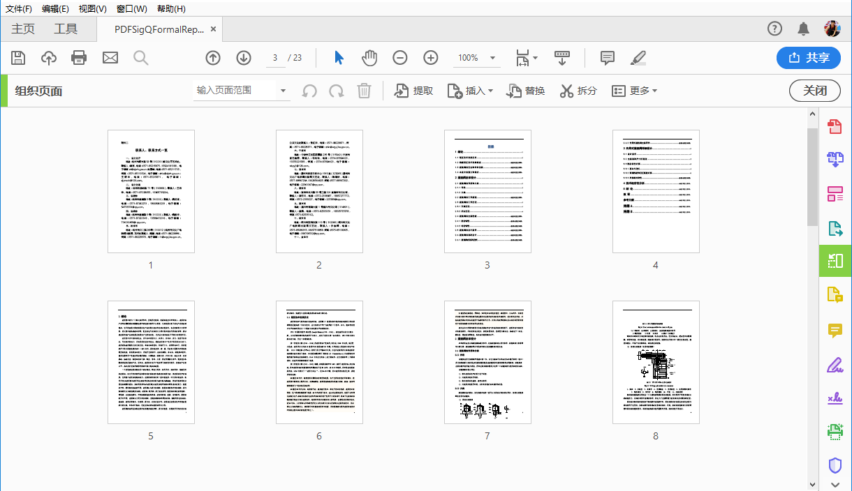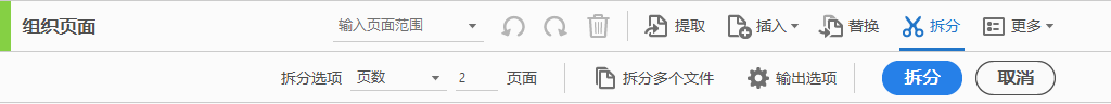 “组织页面”工具集将会显示在辅助工具栏中,同时,页面缩略图将显示在“文档”区域中。