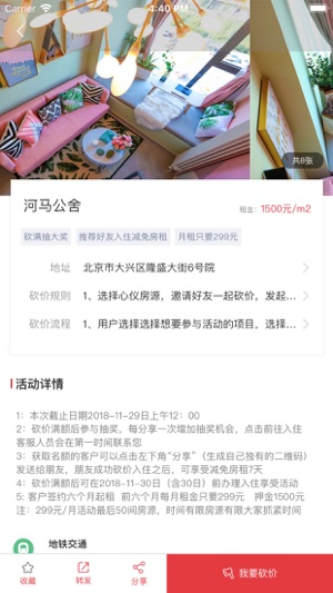 白菜拼房补贴用户数百万,携手河马公舍推出原价 1500/月,现价349/月的优惠活动,希望大家踊跃 来参加。