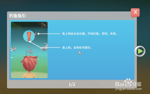 有感叹号的时候就可以左键,表示鱼上钩了进入操作阶段