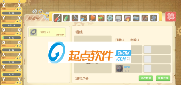 请注意每图中的两个时间:实际时间与计划时间不同,而且是多于计划时间。我的工厂可是满级加速的啊,同样都是用矿石做铝线,我不用工厂才1时,你这1时45分什么鬼。