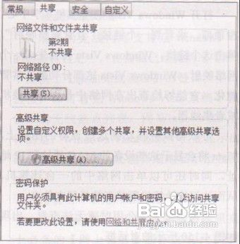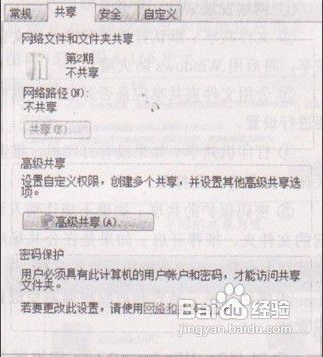 (1)右击文件夹,执行【属性】命令, 弹出【属性】对话框后,会发现不允许xp用户使用"网络文件和文件夹共享”功能,如图5所示。