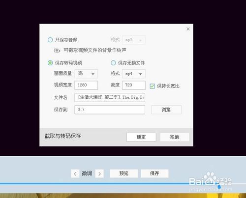 使用左右蓝色小点,蓝色的“线”的部分为截取的部分,选择截取部分,点击“保存”