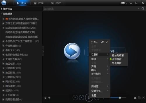 6.播放影片时对于播放器显示在屏幕最前端的配置项