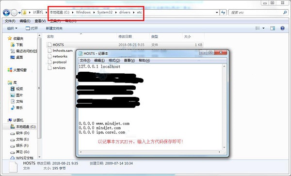 2)鼠标右键以记事本方式打开“hosts”文件,在文件的画面添加: