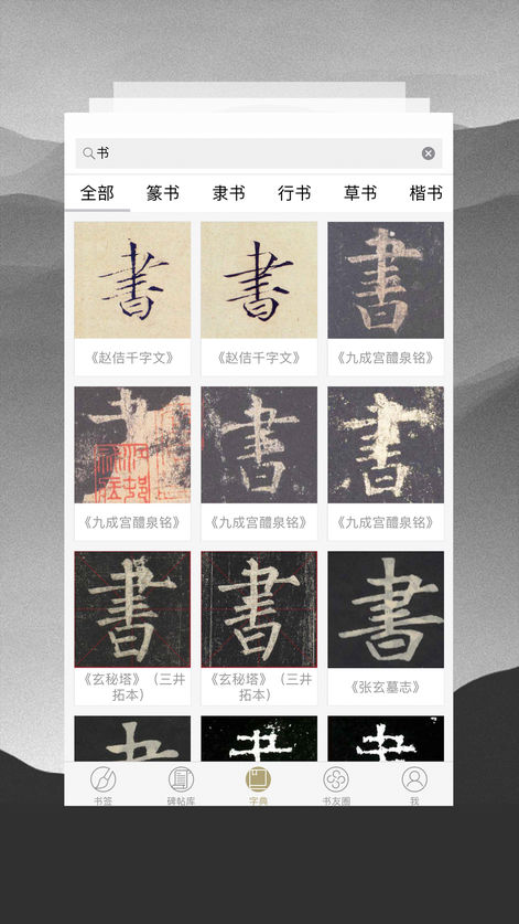 2.字典功能:国内首创单字帖定位碑帖位置,利用大数据分析和图像识别技术实现。