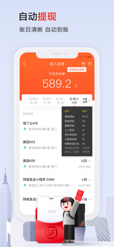 6、在顺丰骑士ios上兼职可以按单结算,月入千元。