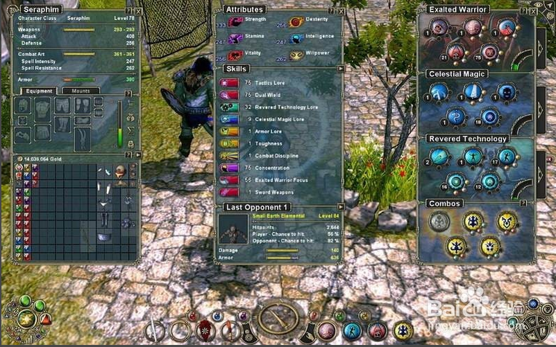 角斗士角斗士的冒险之旅开始于竞技场的后台,与名叫朱利叶斯的家伙交谈,他承诺如果你在竞技场中战胜了对手,就恢复你的自由。穿过竞技场后台中间的大门,进入竞技场中与另一个角斗士战斗,将他打败后,没想到一个兽人不知从哪里冒了出来。继续将兽人打倒,然后返回到竞技场后台再次与朱利叶斯交谈。原来朱利叶斯是一个伪君子,他并不打算真正恢复你的自由,他只是想利用兽人来借刀杀人。如今阴谋没有得逞,朱利叶斯恼羞成怒向你发动攻击,另外还有几个守卫也助纣为虐,加入了战斗。将他们全部杀死后,与房间中名叫罗谢福德的人交谈,得知他是为国王效力的人。罗谢福德将为你打开竞技场的大锁,帮你逃离,同时他还请求你护送他到贝尔文要塞去见指挥官若玛塔。从竞技场出来,沿着道路一直向东走,穿过由两个士兵守卫的木桥,便进入了贝尔文地区。接着朝着东北方向走,穿过大石桥,在一所大房子跟前找到指挥官若玛塔。与之交谈,若玛塔请你到壁垒港寻找崔维尔中士,同时罗谢福德也离开了队伍。
