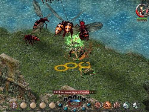 游戏总共提供了 6 个角色供你选择,分别是暗夜精灵刺客(武术大师)、角斗士、魔战士、木精灵游侠、六翼天使和吸血鬼。吸血鬼是一个很有趣的角色,白天她看上去与普通人无异,但是到了晚上就变成吸血鬼,变得更加强壮有力并能够召唤恶狼和邪魔,另外她还能咬敌人并把他们变成忠的奴仆。除了这六个角色以外,游戏还提供了超过 300 种不同的 NPC 和怪物,包括龙、兽人、巨大的蜘蛛、山丘巨人等。游戏采用 2D 背景加 3D 人物,而且画风细腻,如果你用滚轮放大视图,可以看到细节刻画得非常仔细,也可以缩小视图,以便了解周边环境。像 Diablo 一样,圣域可以让你实施物理攻击和魔法攻击,可以装备自己角色类型的武器和装备,对于熟悉 RPG 的人来说这些显得轻而易举。你的魔法库还记载了一些像流星雨这样的超强魔法。你还可以定制自己的组合攻击,但是这需要你去镇子里雇佣一个男巫帮忙。每次升级都会给你技能点,你可以按照角色发展得需要来分配。