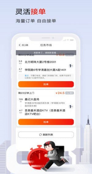 2.接单灵活——兼职骑士自由接单,入职专职合理派单;