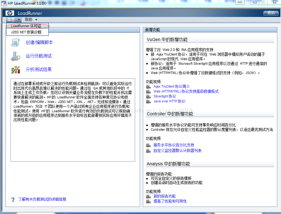 6.现在我们可以安照刚才的步骤重新启动Loadrunner了。再次选择“配置—>loadrunner许可证”