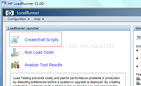 启动loadrunner11:开始-> 程序 -> HP Loadrunner -> loadrunner