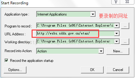 点击OK之后,会弹出网址,之后创建Action,每进一个页面添加一个Action,录制结束后,终止录制。