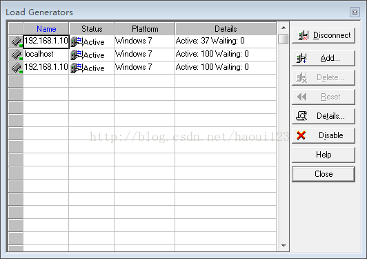 2.添加脚本和负载机,负载机添加不同的IP后进行connect测试。