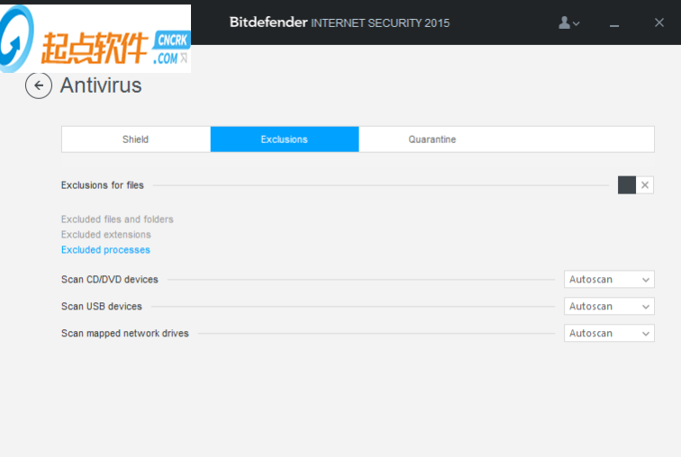 Exclusions for files就是添加信任.可能出现上一些误报你可以把你的文件添加信任,而Bitdefender不会再将该误报文件查杀.