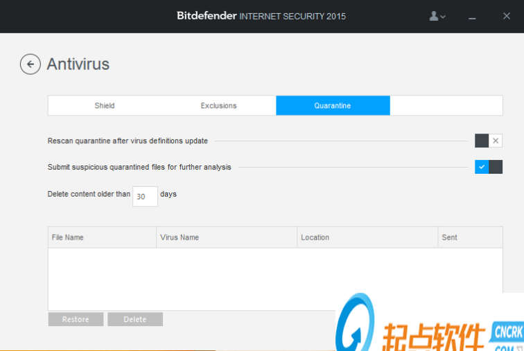 好吧!说完了排除信任.到我们来讲病毒隔离区(Quarantine)了.界面请看以下