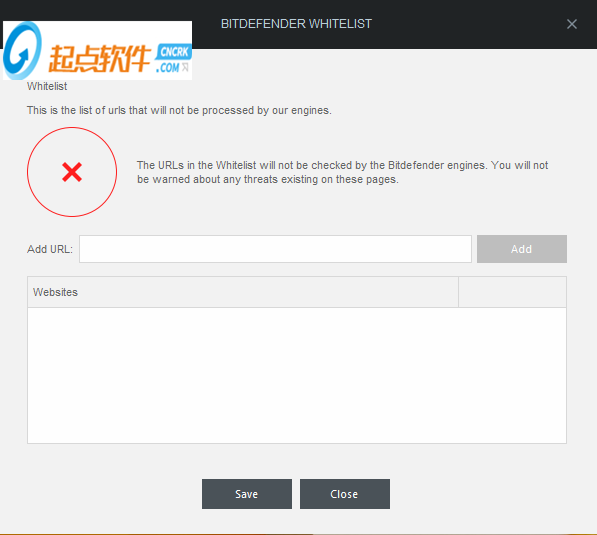 把网址放进去然后按Add(添加)然后按Save->Close
