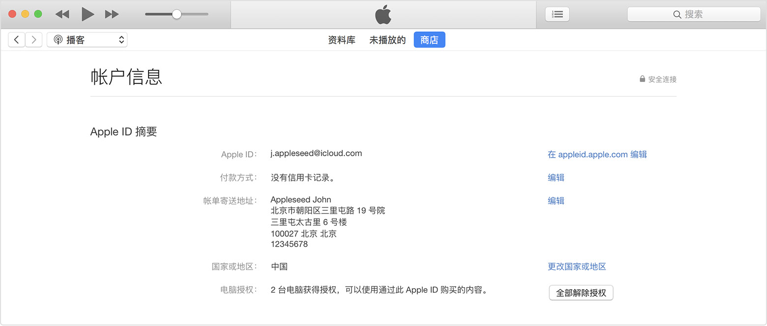如果 iTunes 要求您再次对电脑授权,它不会占用新的授权额度。iTunes 对同一台电脑使用相同的授权。