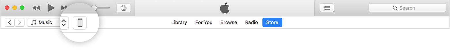 2.使用随附的 USB 连接线将设备连接到电脑。设备连接后,在 iTunes 窗口的左上角会出现一个图标。