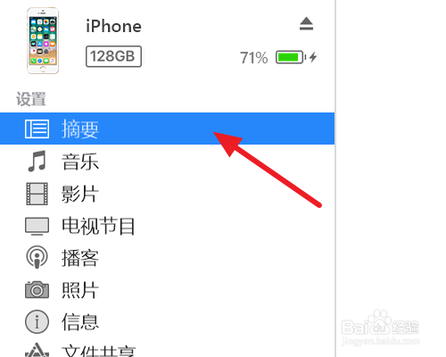 3.点按设备图标 。在 iTunes 窗口左侧的“设置”下,查看您可以从 iTunes 资料库同步到设备上的内容类型列表。