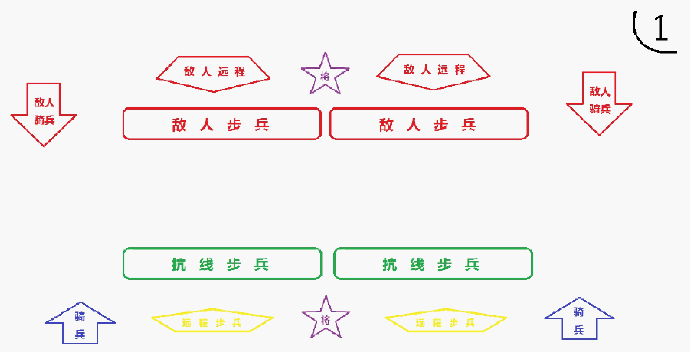 骑兵:拦截敌人骑兵、打败敌人骑兵、打死敌人远程、突击